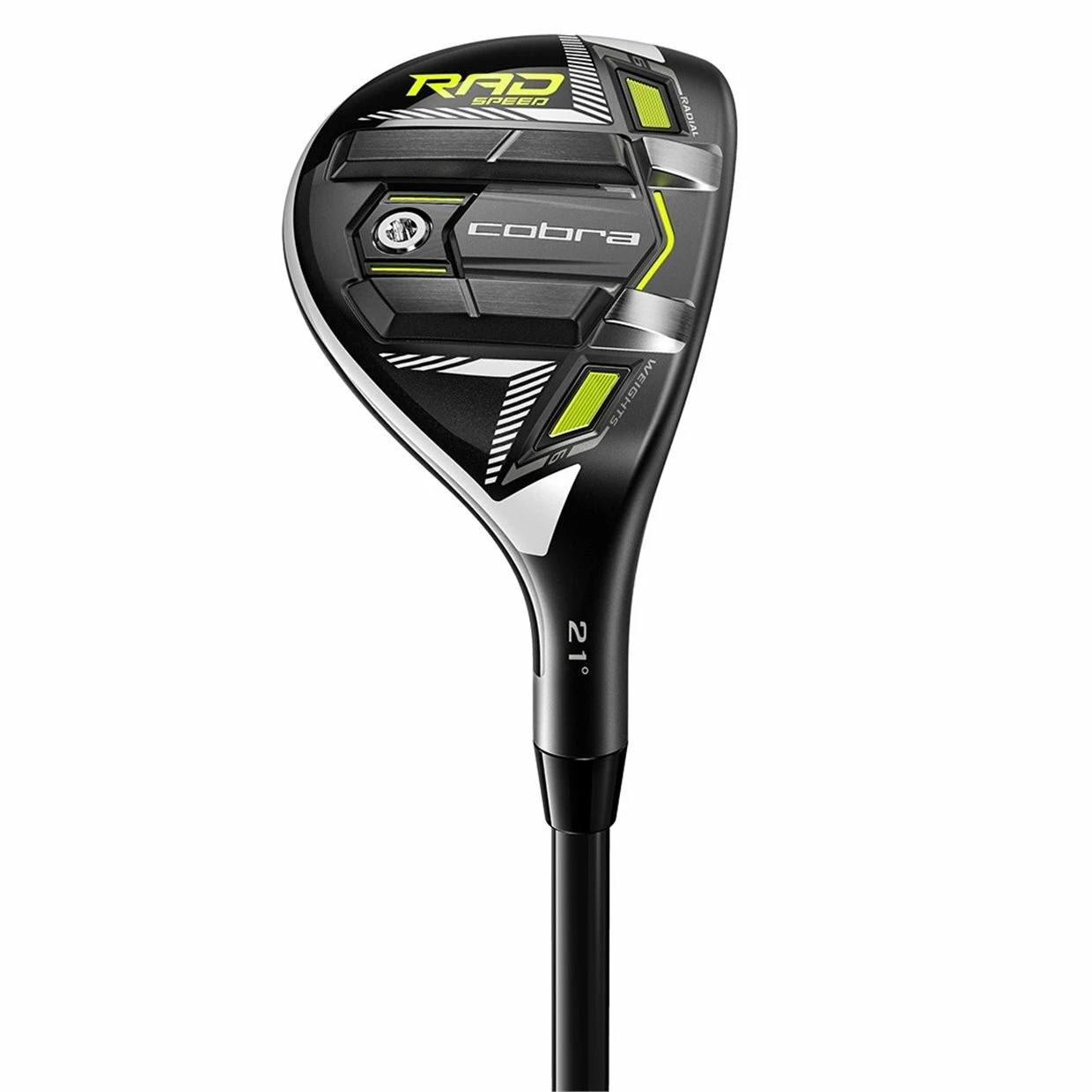 The Cobra RADSPEED Hybrid delivers low spin, high launch, and forgiveness with the front-biased Radial Weighting system. Two internal 6g weights are placed in the front with a 7g weight in the back to create a balance for an ultra low spin shot with high launch. Hollow split rails in the front create 70% more flex from heel to toe, giving you a greater launch with faster ball speeds. A forged insert is thinner and more flexible for even more ball speed and greater stopping power into greens. Two Baffler sole rails prevent digging for better shots out of tougher lies, rough, or bunkers.